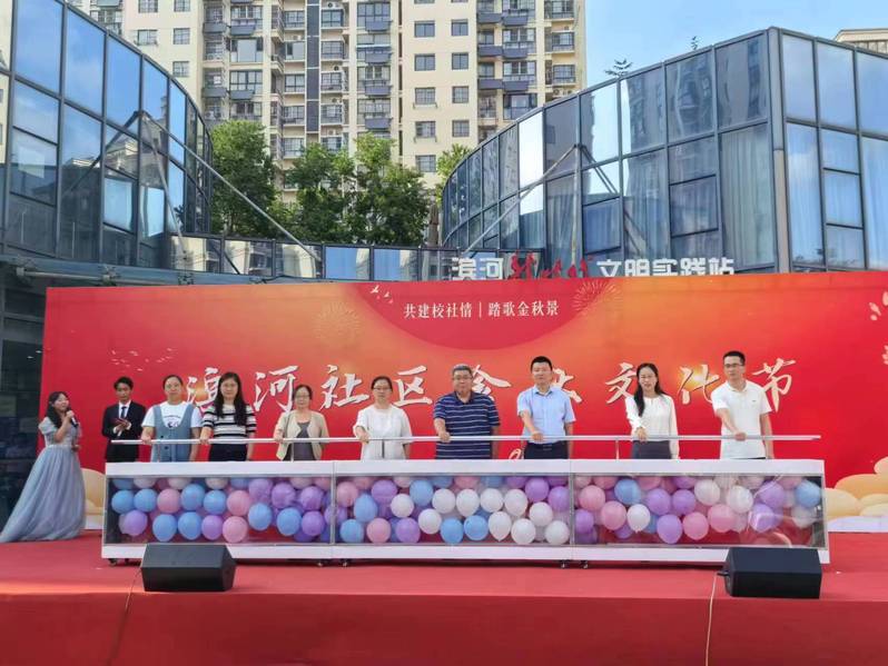 文化节在金秋的暖阳下拉开帷幕,首先张政为金秋文化节活动致词,随后进行的是社区校外实践基地的揭牌仪式。张晓华与区领导以及各高校嘉宾共同为实践基地揭牌,倾倒鎏金流沙并放飞气球。此次实践基地揭牌仪式不仅为学生提供了宝贵的实践机会,更进一步挖掘了校社优势资源,实现在组织上、阵地上的互联互通。