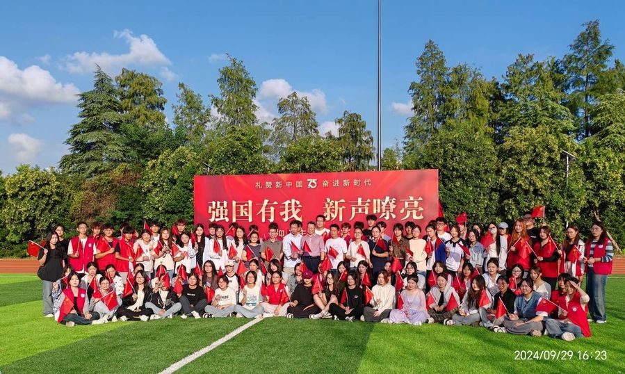 为庆祝伟大祖国75周年华诞,进一步激发同学们的爱国情、民族心、强国志,9月29日下午,经济管理学院在东操场举办了“强国有我 新声嘹亮”迎国庆新生才艺大赛,学院党总支副书记章尧东、学生党支部书记于慧婷、教工党支部书记徐静、分团委书记吴晨兰以及学院教师代表徐君等、民主党派代表陈通、李洁等与学院不同民族的学子们欢聚一起,用朗朗歌声、激扬音韵为祖国母亲庆生。