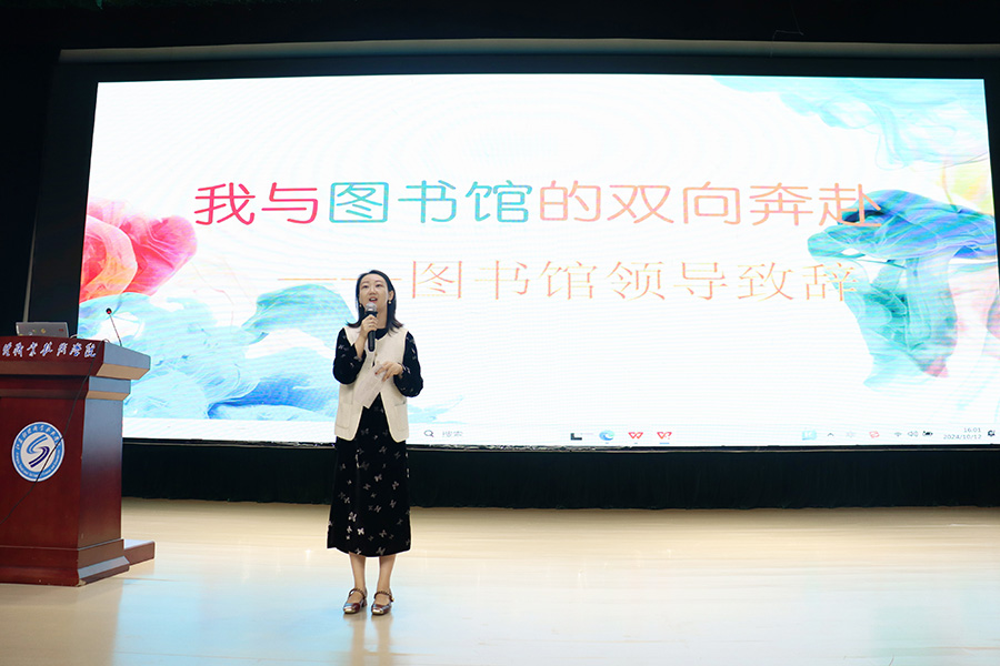 活动开始,图书馆副馆长汤丽媛以“我与图书馆的双向奔赴”为主题致辞,鼓励全体新生走进图书馆,爱上阅读,用浓浓的书香丰盈内心、塑造品格。
