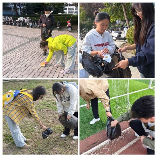 随后,党员先锋队分为四组成员,分别负责校园内不同区域的环境清理任务。