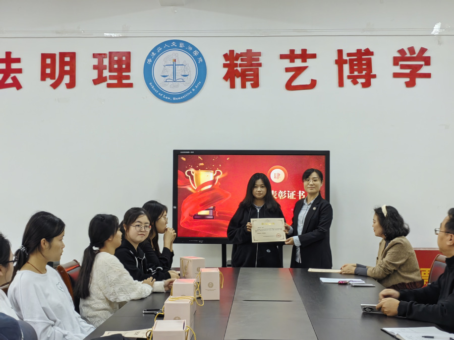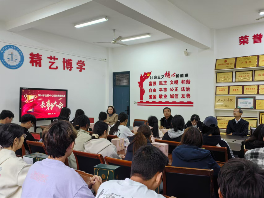 为表彰在校园普法活动中表现突出的成员,充分发挥榜样力量,鼓励更多同学结合自身所学积极参与社会服务,法文学院于10月16日举办了2024年秋季校园普法表彰大会。党总支书记任李、院长解瑞卿、社团指导老师陈树茂、邵白杨及全体讲师团成员参加本次大会。