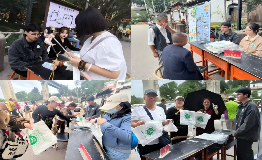 当天下午,“旅行团”成员们来到婺源县李坑景区,协助景区工作人员清理垃圾、为游客提供引导和帮助。环卫李大叔说:“你们年轻人能有这么强烈的环保意识和行动,很了不起!”团队以实际行动传播绿色理念,呼吁人们共同守护美丽的自然环境。