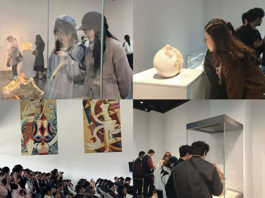 本次展览作品形式丰富多彩,石雕作品汇集了包括,山水、花鸟、走兽、人物,以及社会事件等题材。学生们穿梭于各个展区之间,时而驻足欣赏,时而低声讨论,对每一件作品都充满了浓厚的兴趣。他们被作品中蕴含的深厚文化底蕴、独特的艺术风格和创新的思维方式深深吸引,纷纷表示受益匪浅。