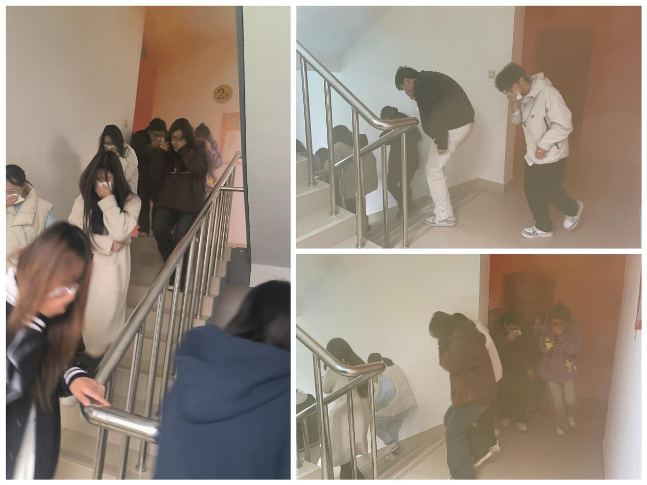 演习还设置了楼道逃生环节。随着烟雾的扩散,同学们在老师的指挥下迅速而有序地沿着指定路线向安全地带撤离。在逃生过程中,同学们严格遵守逃生规则,保持冷静、不推不挤,确保了逃生过程的顺畅和安全。