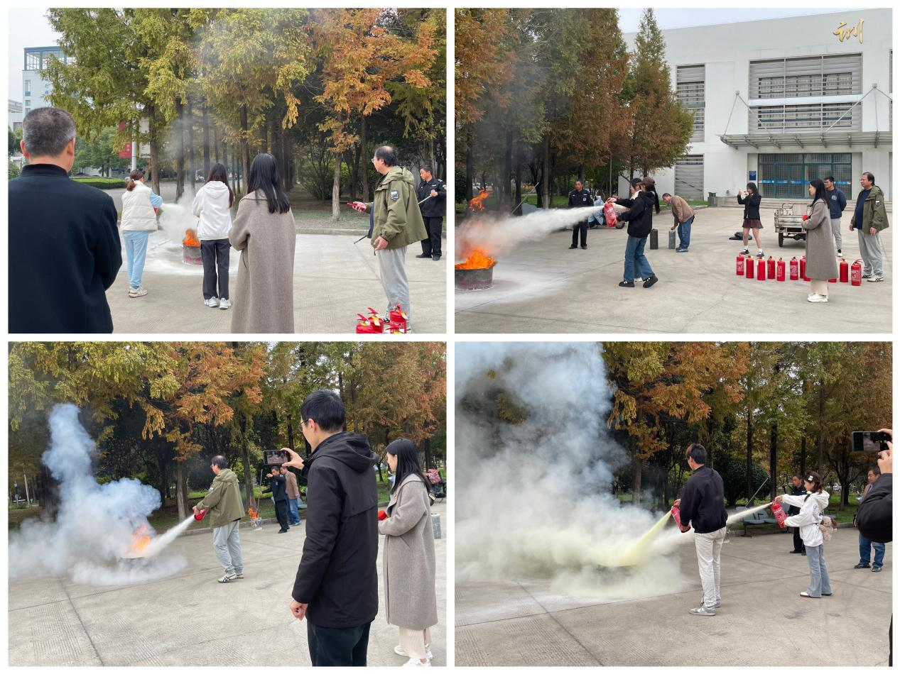 活动现场,保卫处黄新伟老师详细介绍了灭火器的种类、工作原理以及正确的使用方法。通过讲解和示范,同学们掌握了基本的灭火技能。随后,大家按照老师的指导使用灭火器进行灭火演练。