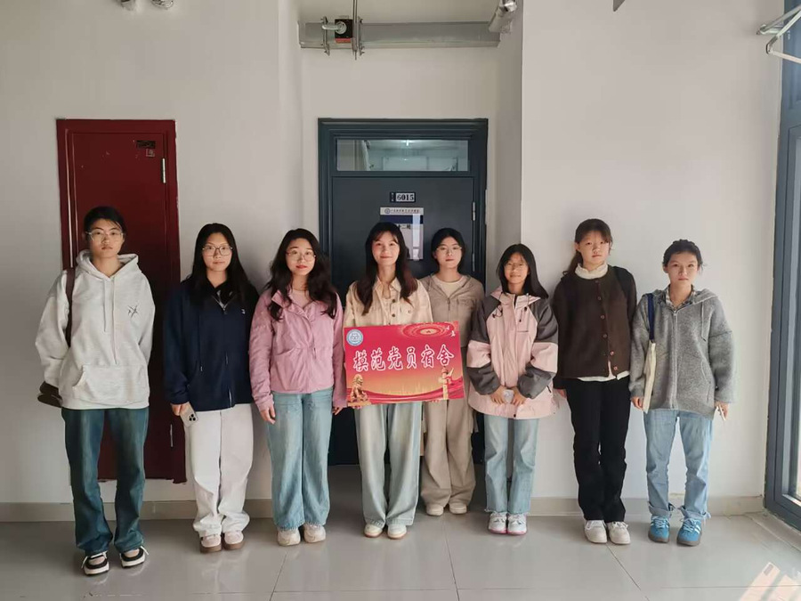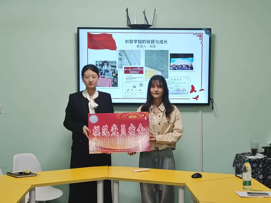 首先,学生党员刘容就自身学习和工作为大家分享心路历程,她勉励在座同学要热爱学习、勤于学习,养成良好的学习习惯,用先进思想理论武装头脑。随后,朱羽老师为刘容同学授予“模范党员宿舍”称号并进行合影留念。挂牌启动仪式结束后,汤韵慈老师来到宿舍进行走访,与同学们深入交谈,鼓励同学们继续在宿舍文明建设中发挥力量,并亲自为学生党员宿舍挂牌。