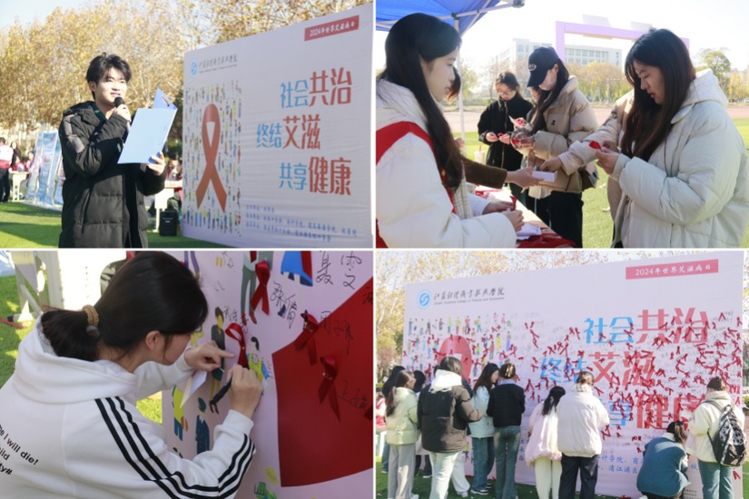 在第37个“世界艾滋病日”来临之际,在淮安市红十字会、清江浦区红十字会的支持与指导下,我校举办了“携手防艾·青春同行”校园防艾宣传教育活动。此次活动由校团委、总务处、关工委秘书处主办,校红十字会、会计学院、商务英语学院共同承办,通过一系列精彩纷呈的活动形式,呼吁大家共同关注艾滋病,增强高校学生在预防艾滋病和反对歧视方面的意识与行动力。