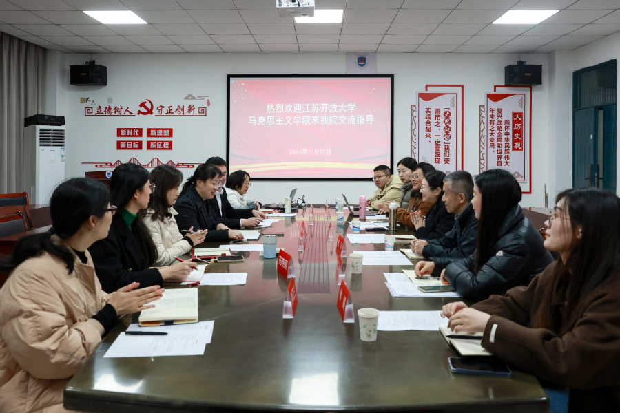 11月25日上午,江苏开放大学马克思主义学院院长季海菊一行来我院交流。学校党委委员、党委宣传部部长邹瑄,马克思主义学院院长郑毅、党总支书记费婷婷、副院长张玉英、教研室主任和教师代表等参加交流会。
