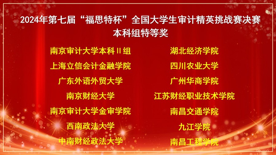 11月30日,由中国审计学会审计教育分会主办、南京审计大学政府审计学院承办、广州福思特科技有限公司提供技术支持的2024年“福思特杯”全国大学生审计精英挑战赛在南京审计大学举行。