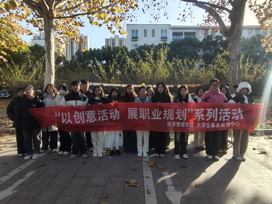11月27日下午,经济管理学院职业规划部在学校景观大道举行了“以创意活动,展职业规划”活动,旨在通过用不同的活动创意来引导学生树立正确的职业观念,抓住生涯探索这一关键词,从而增强职业规划意识,帮助大学生尽早明确自身的职业发展方向和目标。