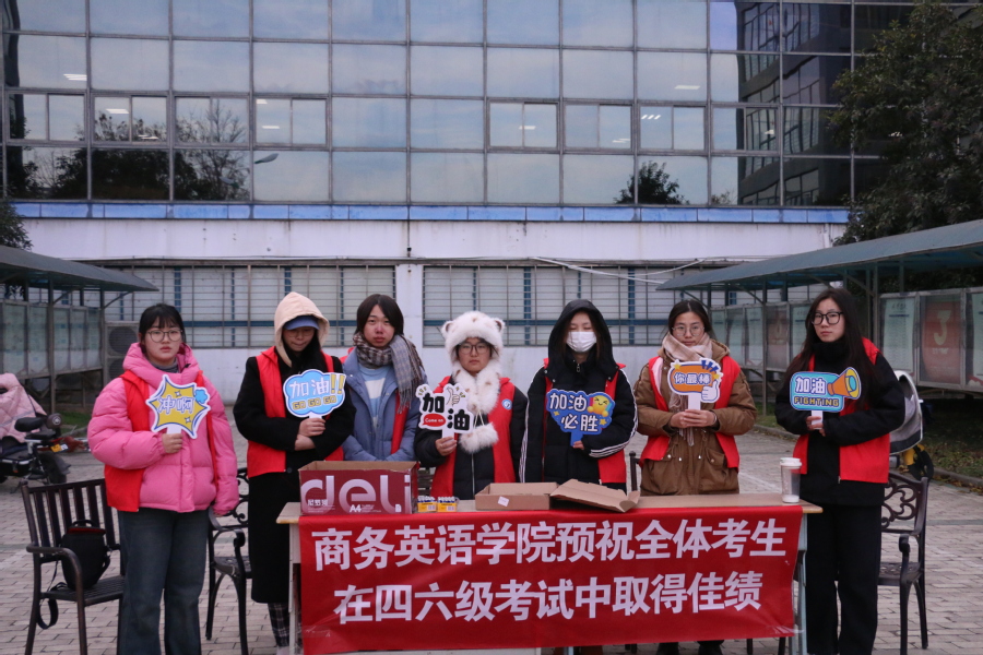 12月14日,在这个寒风凛冽的日子里,商务英语学院分团委为即将参加英语四六级考试的同学们送上了一份特别的温暖,希望考生们能够在四六级考试中取得佳绩。
