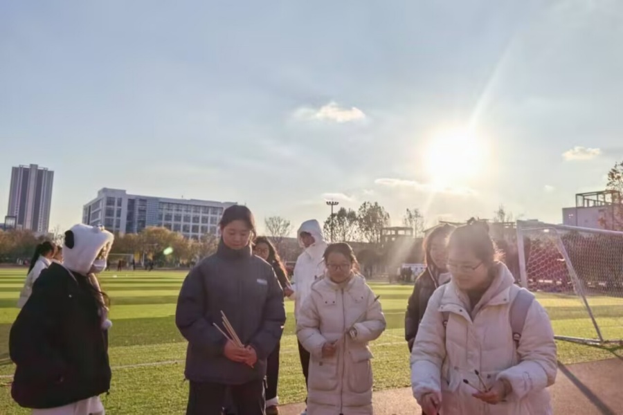 活动现场,同学们积极踊跃投身其中。在东操场写笺符语录,表达祝愿与美好、于东一南侧大草坪,欢乐竞猜、在图书馆对面以飞花令展才情、至西操场竞技投壶,每个点位都洋溢着欢声笑语,同学们凭借智慧与技巧,集齐贴纸,完成活动任务。