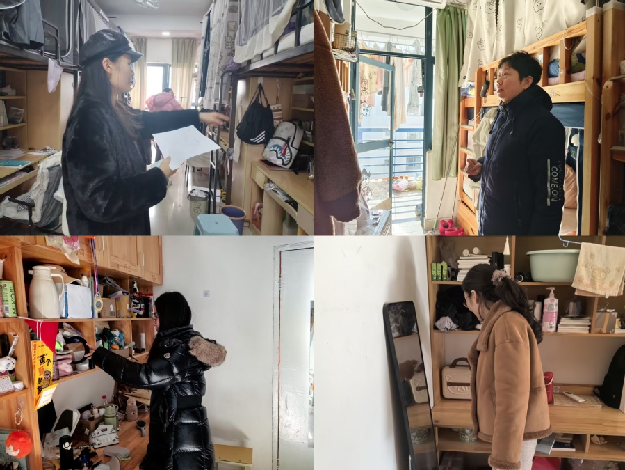 本次安全隐患排查以师生共查的方式展开,重点对吸烟、喝酒、私拉乱接、大功率电器、易燃易爆物品、管制刀具等问题展开排查。排查中,辅导员老师们向同学们普及安全知识,对用电安全、消防安全等方面进行指导,提醒同学们在期末认真复习的同时,更要严守学校相关规定,严抓安全问题不松懈,严防安全事故发生。
