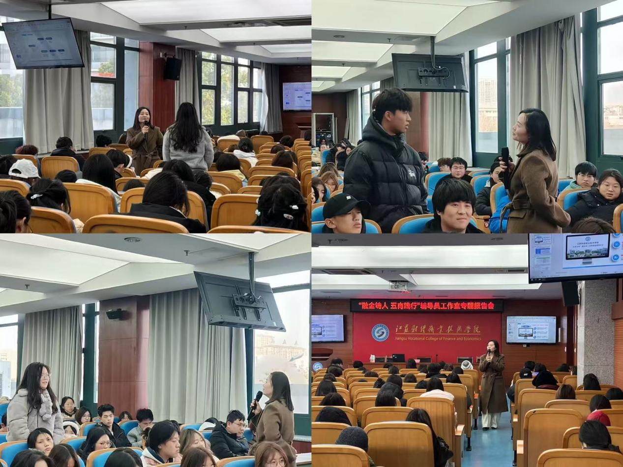 12月27日下午,金融学院党总支副书记汤筱娴在图书馆220学术报告厅召开“融金铸人”五育践行专题报告会,2024级新生班级参加了此次座谈会。
