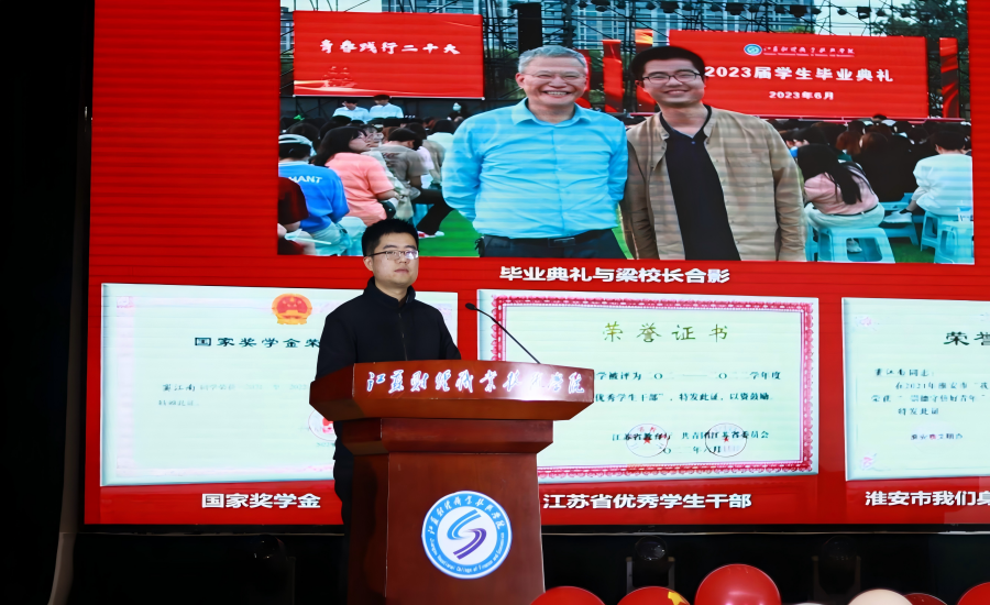 优秀毕业生窦江南上台分享自己的成长经历,传授学习经验,寄语学弟学妹们,珍惜在校时光,让青春不留遗憾,也预祝转本同学们“考神附体,顺利上岸!”