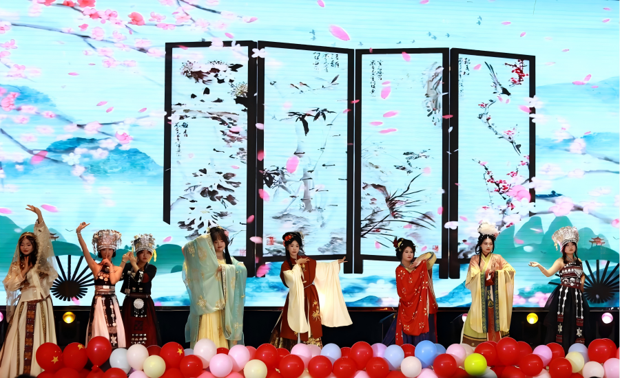 晚会节目形式多样,包括舞蹈、戏曲、朗诵、歌唱等,师生同乐,自信展现自我。婴幼儿专业的同学舞蹈表演《寄明月》,让我们感受到了青春的律动与欢乐的节拍;学院教师代表邵白杨、孟繁森朗诵《法在心中》,将法治精神在每个人心中生根发芽;各专业学生合作带来《歌曲串烧》,集体唱响青春主旋律;数媒专业学生表演的京剧《桑园会》,让大家再次感受到国粹之美;学工办主任邵佳领衔4名艺术专业学生带来《舞蹈串烧》,将古典和现代艺术进行青春的碰撞,掀起晚会高潮;法律专业同学的朗诵表演《诗词里的中国》,带领大家触摸文化的脉搏,领略国家的强大;学生会干部献上集体小合唱《稻香》,引起现场观众集体合唱;藏族学生的《锅庄》和汉族学生的《东方国色》,是一场集民族舞蹈与现代走秀于一体的综合性艺术表演,展现出各民族文化的独特魅力与和谐共融的美好愿景。