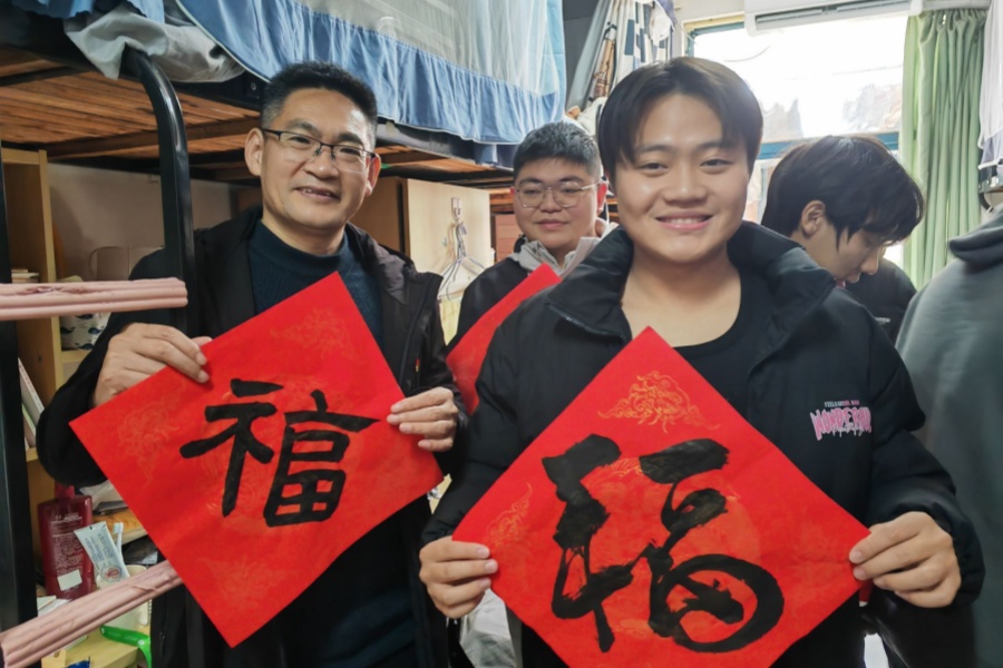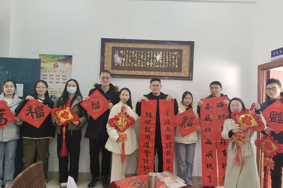 为了让学院每位学生共同感受节日氛围,支部教师党员带着刚完成的“福”字与对联,走进学生社区,走进学生宿舍,将浓浓的情意、诚挚的祝福送到在校的每一位学生手中。