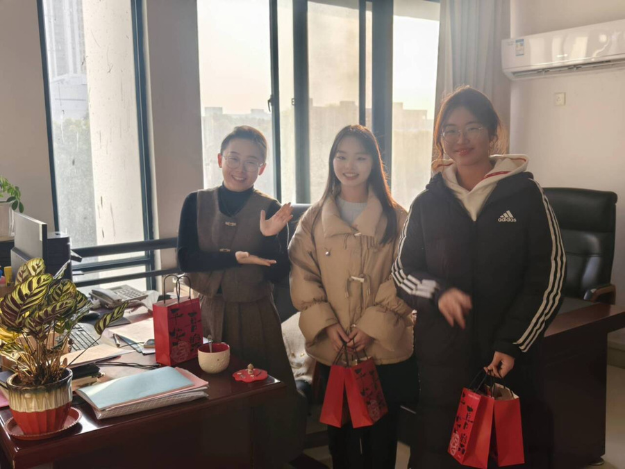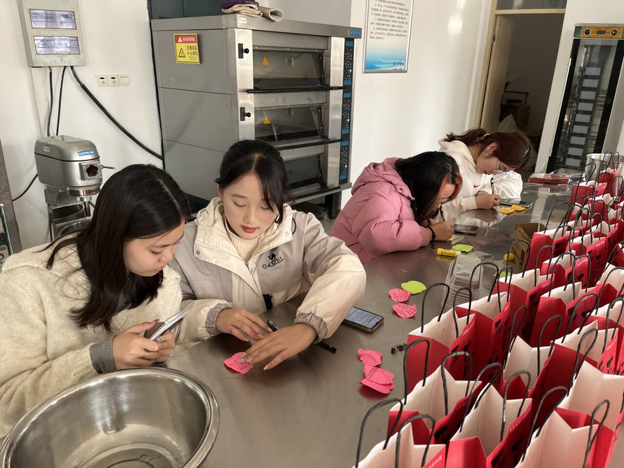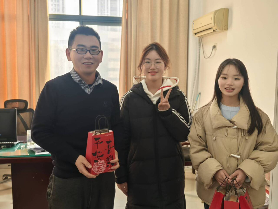 制作完成后,成员们将甜品精心包装,并附上温馨的感谢信,以表达对老师、门卫、宿管和食堂工作人员等一年来辛勤付出的感激之情。随后,大家将这些满载心意的甜品逐一送到了他们手中。