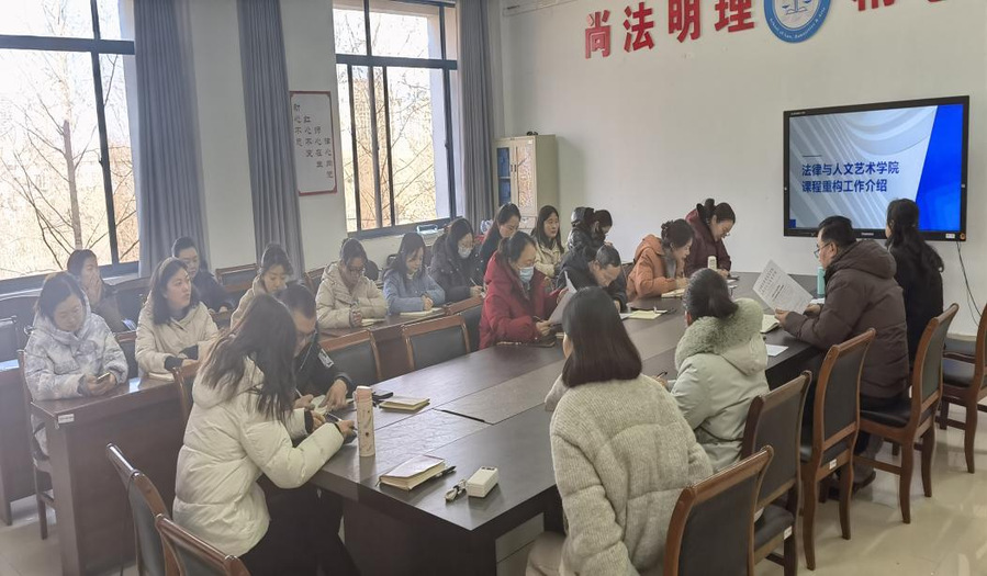 会议伊始,副院长王真真对《法律与人文艺术学院关于开展课程重构工作的通知》(苏财院法[2025]1号)文件进行了详细讲解,为课程重构工作提供了政策指引和理论基础。