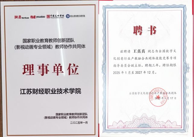 本次理事会聘请了教育部教师教学创新团队建设项目秘书处刘冬、教育部高等教育评估评价专家何辉、山东省职业教育师资培训中心张峰、湖南省教育厅教科院职成所毕树沙担任全国数字文化创意行业产教融合共同体顾问,并宣读了共同体增补的副理事长、常务理事单位名单以及秘书处、各专项指导委员会主任和副主任名单。我校凭借在数字文化创意领域的卓越表现和产教融合的深厚基础,成功当选为全国数字文化创意行业产教融合共同体常务理事单位、国家职业教师创新团队(影视动画专业领域)教师协作共同体理事单位。法律与人文艺术学院王真真,当选全国数字文化创意行业产教融合共同体技能竞赛专项指导委员会副主任委员。