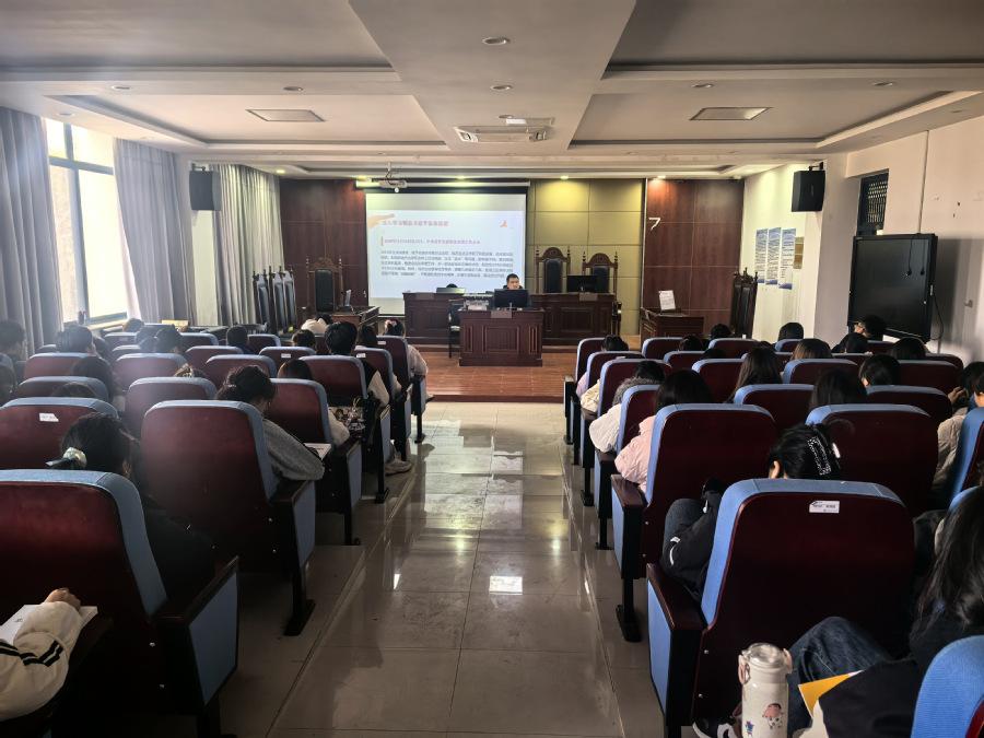 2月28日下午,益新大讲堂第二十五讲在笃行楼302模拟法庭成功举办。淮安市人大常委会法工委立法处处长范进,以“学习贯彻习近平法治思想,高质量开展地方立法工作”为题,为2024级法律事务专业一百余名大学生作了一场精彩报告。讲座由法文学院院长解瑞卿主持。