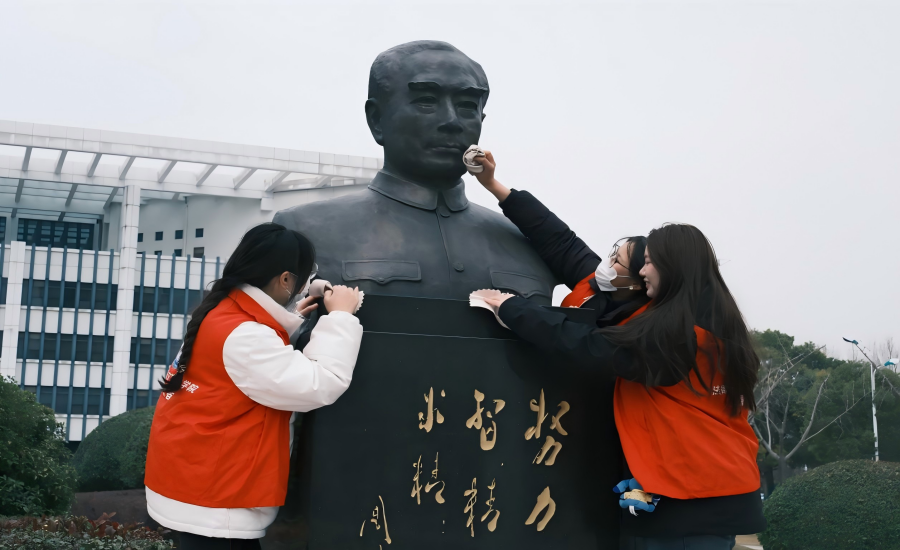 3月5日,正值学雷锋纪念日及周恩来总理诞辰127周年之际,法律与人文艺术学院开展“传承雷锋精神,点亮信仰之光”志愿服务活动,志愿者们通过打扫翔宇广场、擦拭周恩来铜像、环校灯箱等行动践行雷锋精神,表达对周恩来总理的深切缅怀与敬仰。