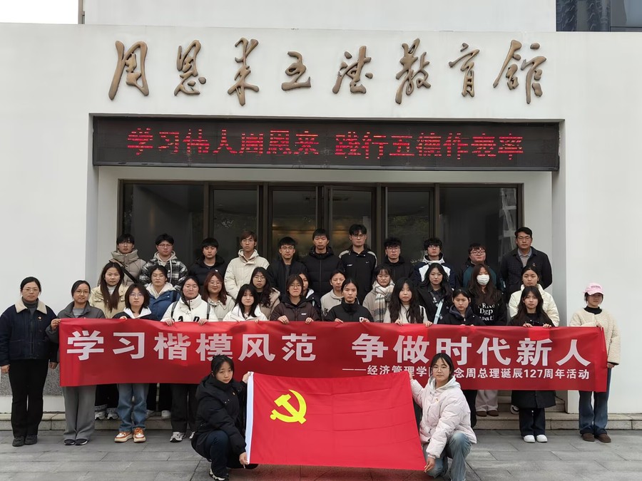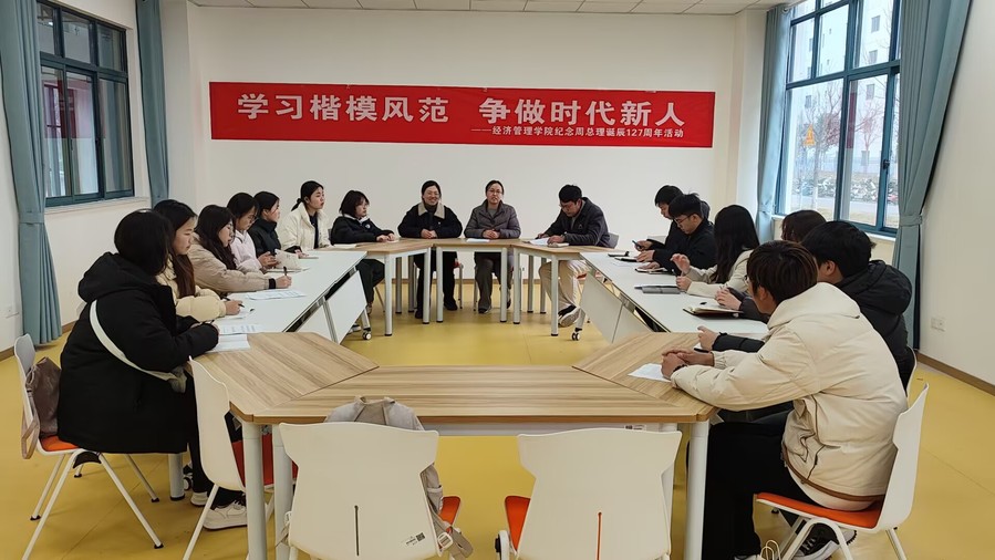在周恩来总理诞辰127周年之际,为引导学院青年深入学习、大力弘扬周恩来总理的崇高品质,向伟人看齐,争做有理想有担当的新时代青年,3月4日下午,经济管理学院学生党支部和分团委联合组织开展了“学习楷模风范 争做时代新人”的主题教育活动。学院30余名学生党员代表、入党积极分子代表、入团积极分子代表参加,学院学生党支部书记于慧婷、分团委书记吴晨兰、辅导员老师姜振全程参与。