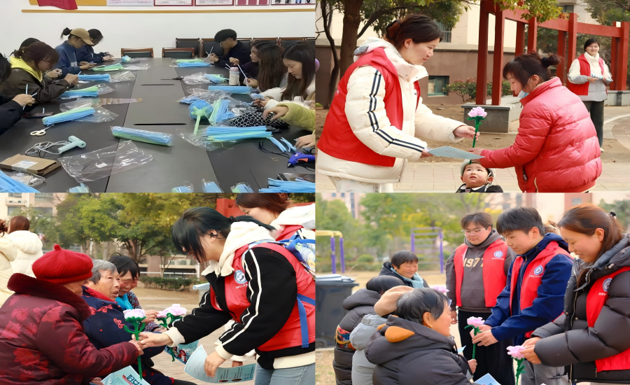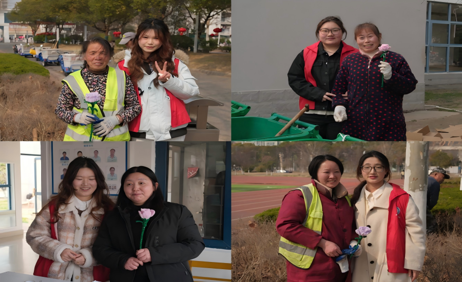 3月8日,“海棠行”志愿服务队将爱心延续,把目光聚焦到节日里依旧坚守在工作岗位上的女性群体。在校内,食堂阿姨、保洁阿姨、宿管阿姨们收到了志愿者们递来的自制绒花,平日里她们默默付出,为师生们创造了良好的生活与学习环境,这一朵朵绒花承载着对她们辛勤工作的认可与感谢。在校外,志愿者们同样没有忘记那些平凡岗位上的女性,为卖水果、坚果的阿姨们送上绒花,带去节日的问候,用实际行动向这些 “巾帼力量” 致以最诚挚的节日祝福,让她们在忙碌的工作中感受到来自社会的尊重与关怀。