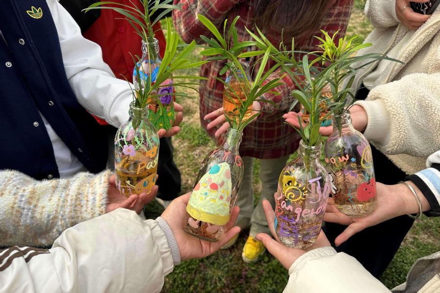 创作完成后,参与活动的同学们领取了水培绿植,小心翼翼地将其放入精心装饰的玻璃瓶中,并缓缓注入清水,让植物的根系在清水的滋养下自由舒展。同学们纷纷表示,会将这些绿植带回宿舍认真照料,为宿舍环境增添生机与活力。
