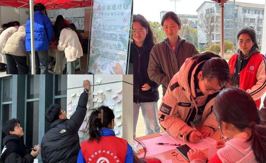 活动现场策划了“压力出逃计划”系列活动,备考学生们踊跃参与扔纸飞机、情绪涂鸦墙、烦恼纸团投篮、接力画画等解压小游戏。在游戏过程中,欢声笑语不断,大家成功释放了积攒已久的压力,调整好了心态,以更为饱满的精神状态,迎接即将来临的考试。