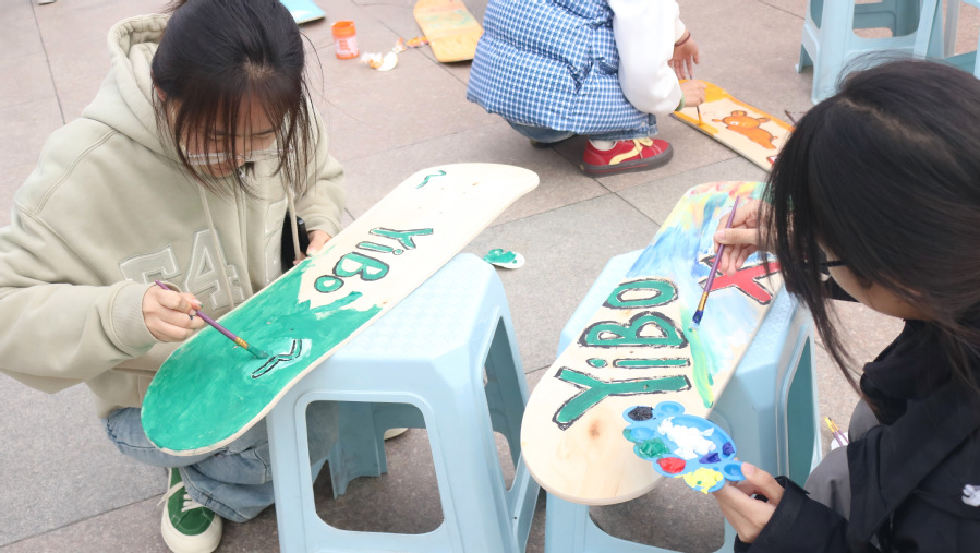 活动内容丰富多样,精彩纷呈,包含“滑板DIY创意绘画”和“滑板接力赛”两个环节。在滑板DIY创意绘画环节,参与者们充分发挥奇思妙想,凭借手中的绘画工具与颜料,在滑板板面上勾勒出风格各异的图案,将滑板变成创意展示的舞台,展现了青春的活力与想象力。