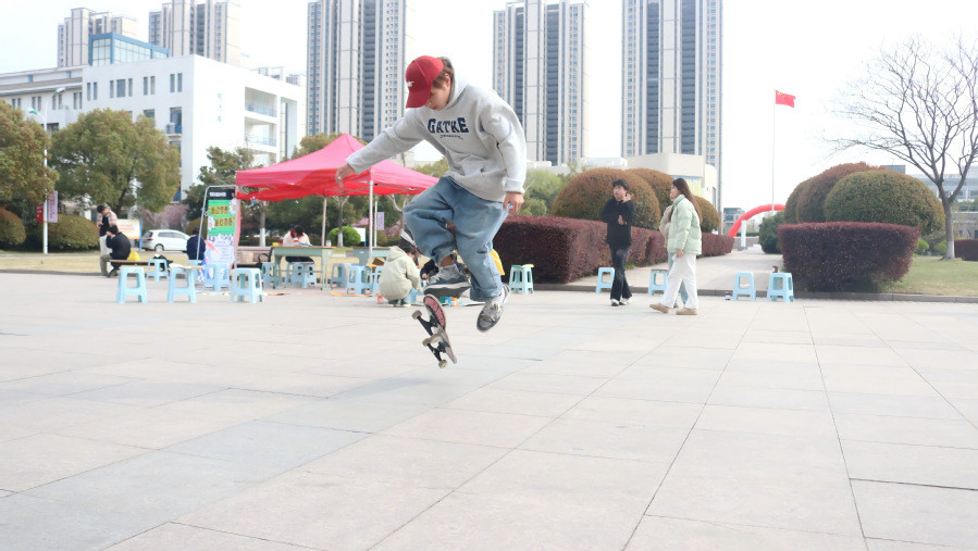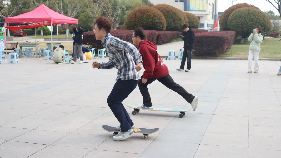 为深入贯彻落实“五育并举,融合育人”理念,推动体育、美育协同发展,学院积极开展多元化校园文化活动。3月30日下午2点,智能工程技术学院滑板社在图书馆前广场举行“滑动梦想,板载青春”滑板活动,本次活动面向全校开展,吸引了众多同学积极参与。此次滑板活动旨在推广滑板文化,为滑板爱好者搭建交流学习平台,同时促进学生身心健康,营造积极向上的校园氛围。