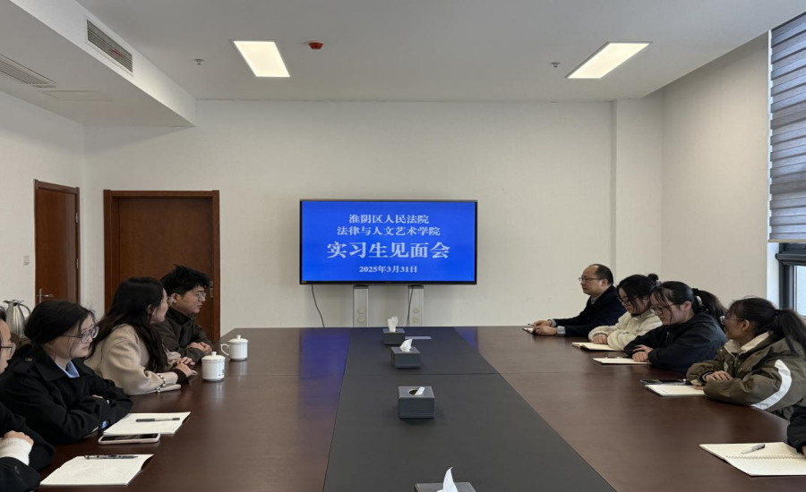 为加强校地合作,提升法律专业学生的实践能力。近日,法文学院组织法律事务专业2022级10名学生,集中赴淮阴区人民法院进行为期两个月的实习锻炼。3月28日下午,实习面试交流会在笃行楼410法文学院会议室举行,淮阴区人民法院政治部主任王玉飞、四级法官助理曹丁允担任面试官,法文学院院长解瑞卿、学工办主任邵佳和参加实习的10余名学生出席,会议由解瑞卿主持。