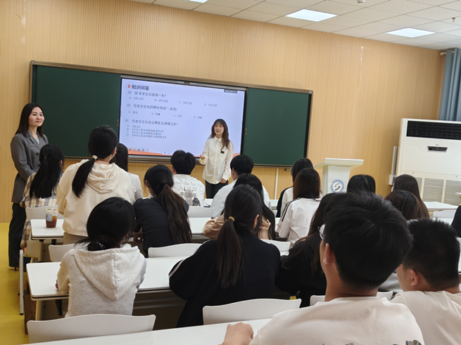 问答环节将整个活动推向高潮,问答题目涵盖政治、国土、军事、经济、文化,网络等多领域安全知识,紧密结合时事热点与校园生活实际。在场的同学们都在全神贯注,迅速思考。有的同学对答如流,展现了扎实的知识储备;有的同学答题后认真记录,进一步加深对国安知识的理解。活动结束后,同学们纷纷表示收获颇丰,今后也会持续关注国家安全知识,做国家安全的守护人。