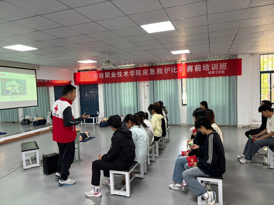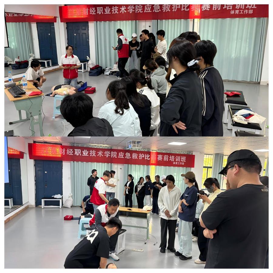 为弘扬“人道、博爱、奉献”的红十字精神,进一步增强大学生的社会责任感和使命感。4月23日,由体育工作部牵头邀请清江浦红十字会杨森、周克林两位专家老师,莅临为我校参加校应急救护比赛的近40名运动员进行培训。