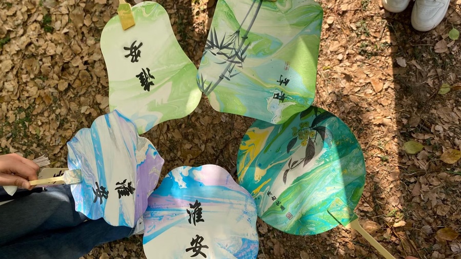 同学们满怀热情,在东一南草坪齐聚一堂,共同参与了此次活动。学院社团管理部通过签到形式安排学生领取原材料并当场制作。制作过程中,同学们先精心挑选扇骨、扇面材料,接着调制漆料、上色,待干后进行印刻等装饰,最后组装成精美漆扇。