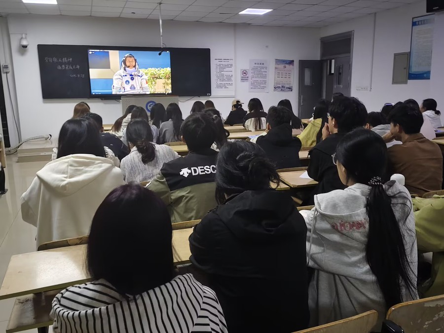 活动当晚,学院组织新生班级同学集体组织观看神舟二十号载人飞船成功发射视频,共同见证中国航天的伟大时刻。