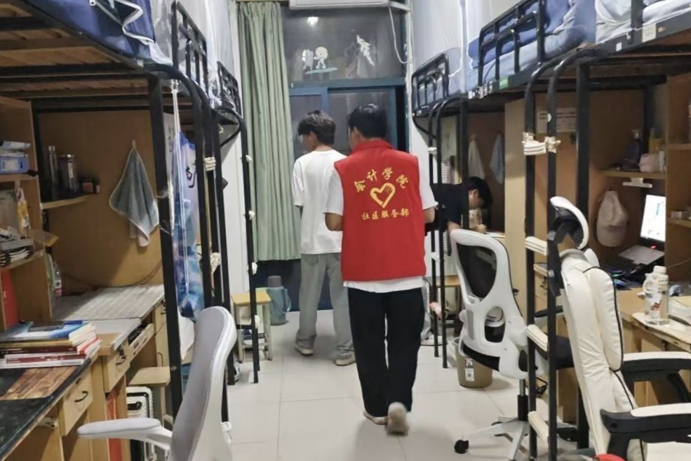 为强化新生军训实效、培养良好生活习惯,近日,会计学院组织开展了2025级新生军训“内务整理”优胜宿舍评选活动。在学院统一部署下,由新生辅导员和大学生网格化管理服务中心学生代表共同组成的检查小组,对学院109间新生宿舍进行了全覆盖检查与评比。