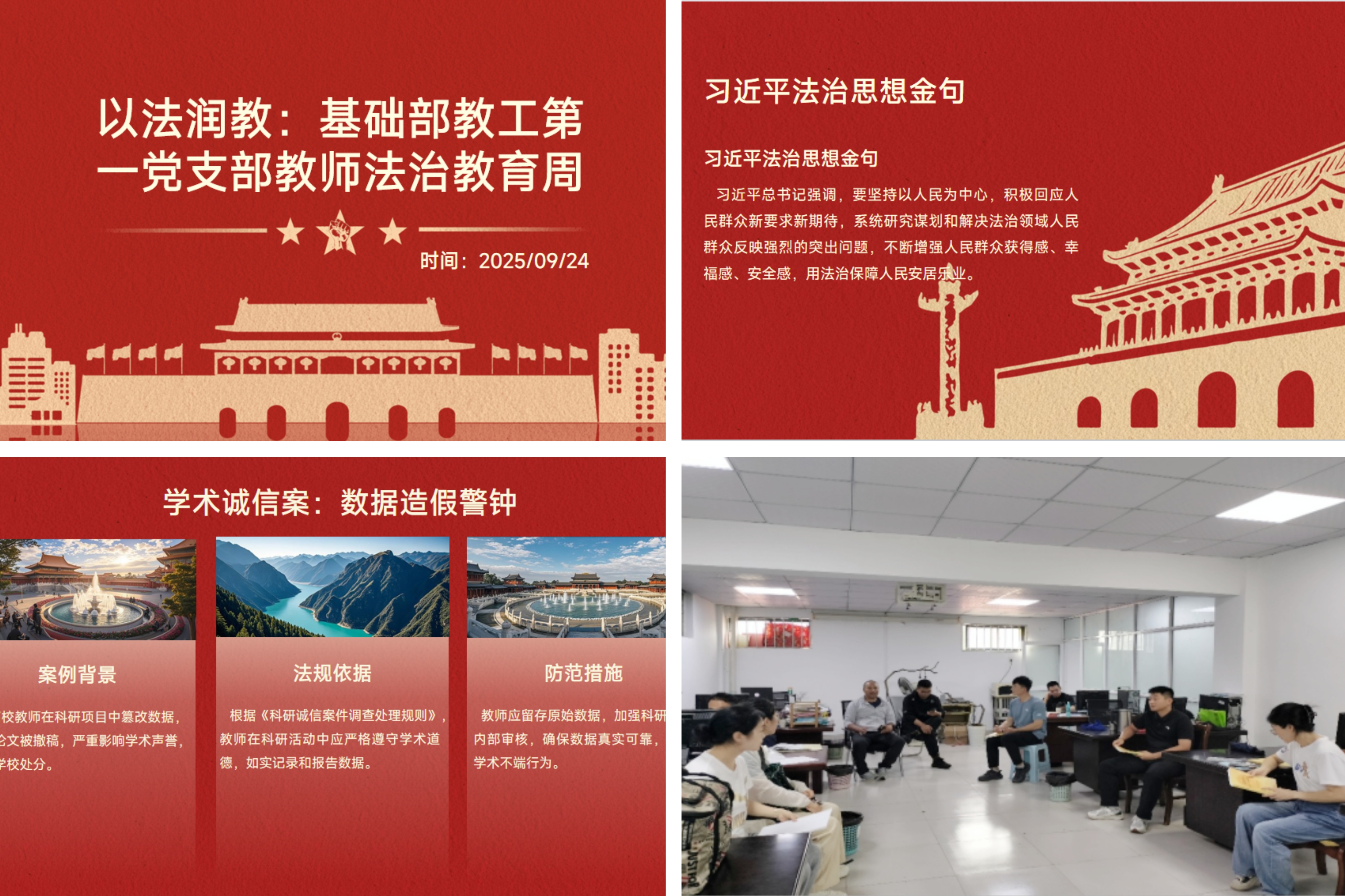 9月24日下午,基础教学部党总支教工第一、第二党支部分别组织开展法治宣传教育周专题学习活动,积极响应基础教学部党总支的统一部署,以实际行动践行教育系统在全面依法治国进程中的使命担当。