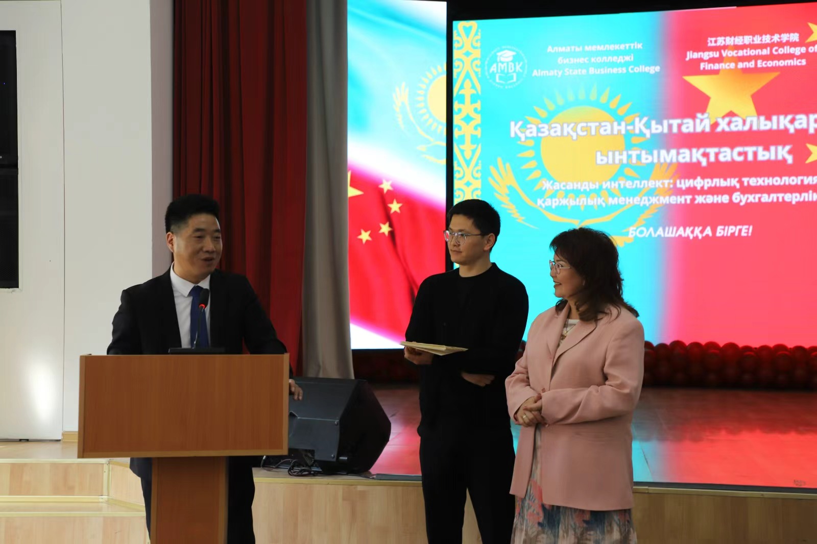 阿拉木图国立商学院校长穆卡詹诺娃·阿依努尔女士在致辞中引用中国谚语“远亲不如近邻”,向远道而来的江苏财经职业技术学院教师团队表达了热烈欢迎。我校国际教育学院党总支副书记相项介绍了学校发展历程与办学特色,对阿拉木图国立商学院的精心筹备表示感谢,并期望以此次培训为起点,进一步拓展合作领域,深化两校友谊。