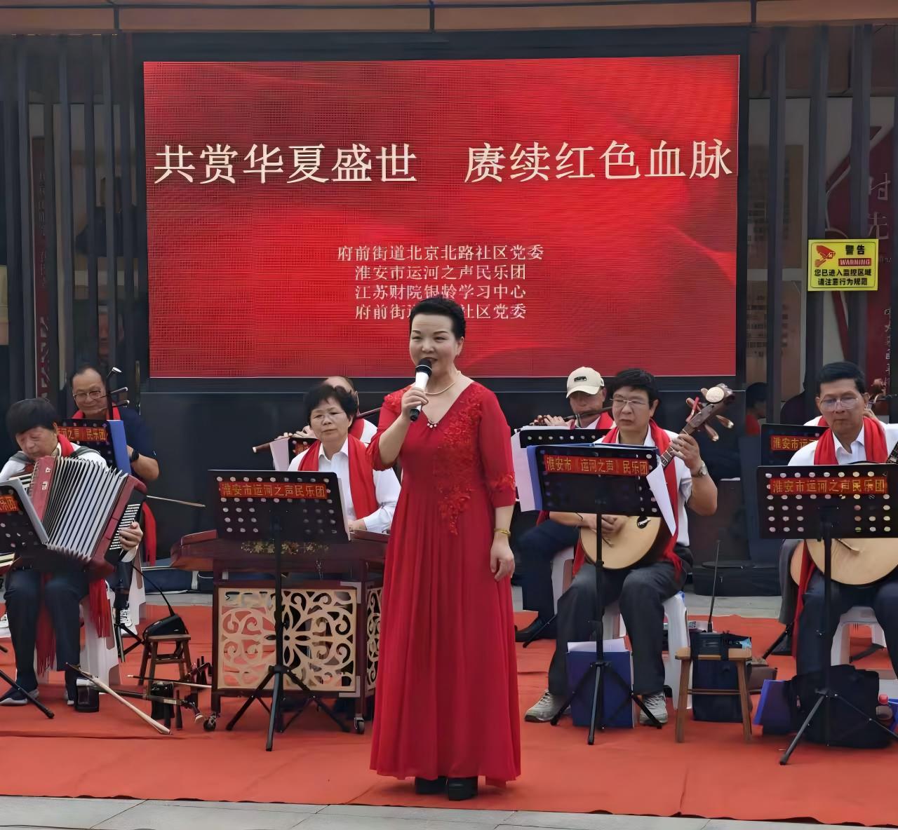 金秋时节,丹桂飘香,国庆佳节的喜庆氛围日渐浓厚。9月30日下午,淮安市清江浦区府前街道夕阳红广场热闹非凡,由江苏财经职业技术学院银龄中心与北京北路社区联合主办的“同心庆国庆,共建家园情”公益慰问演出正式启幕,近百名居民欢聚一堂,共迎祖国华诞、共叙邻里温情。