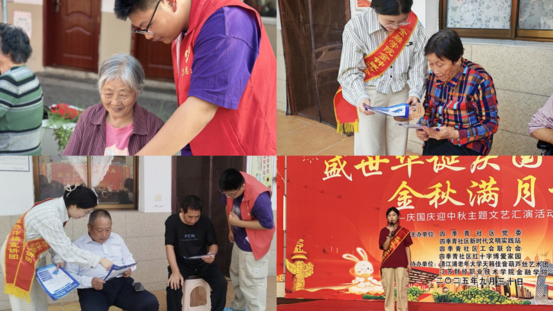 近日, 为落实学校“五育并举,融合育人”工作体系建设,弘扬“尊老、敬老、爱老、助老”传统美德并筑牢社区老人群体防诈防线。在中秋国庆双节临近之际,我校金融学院联合四季青社区、清江浦老年大学葫芦丝艺术团,以文艺汇演与互动宣讲形式,开展“盛世华诞庆国庆,金秋满月话团圆”敬老防骗活动。