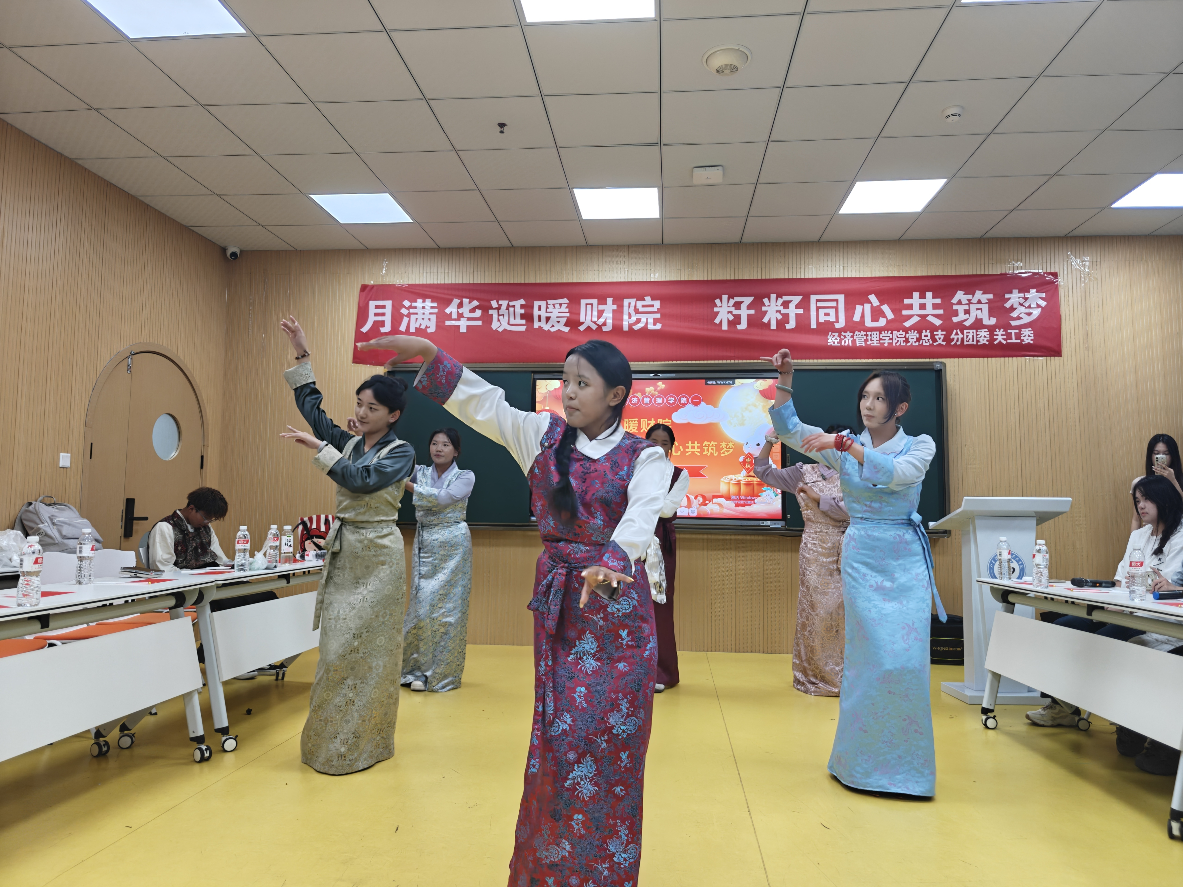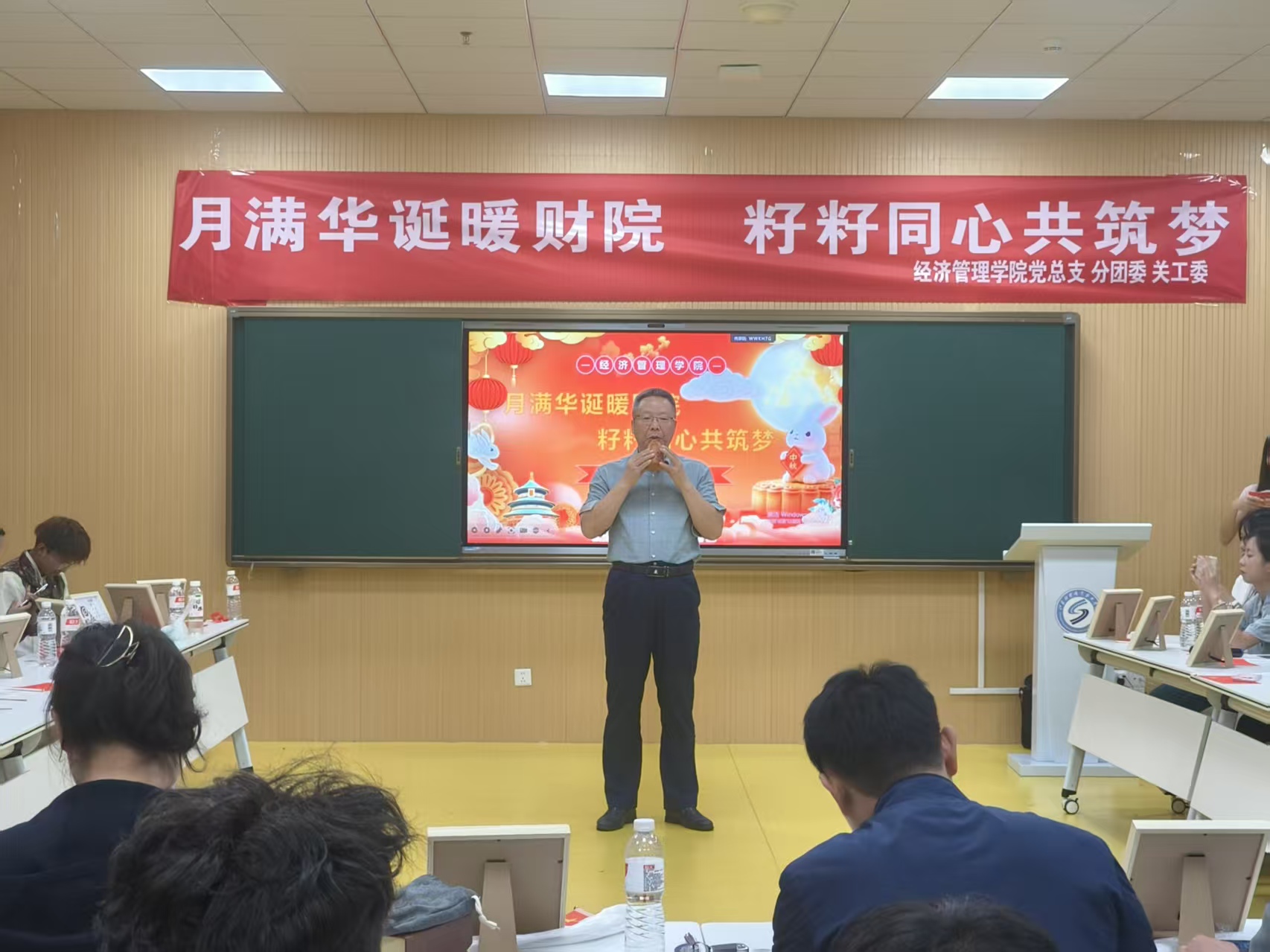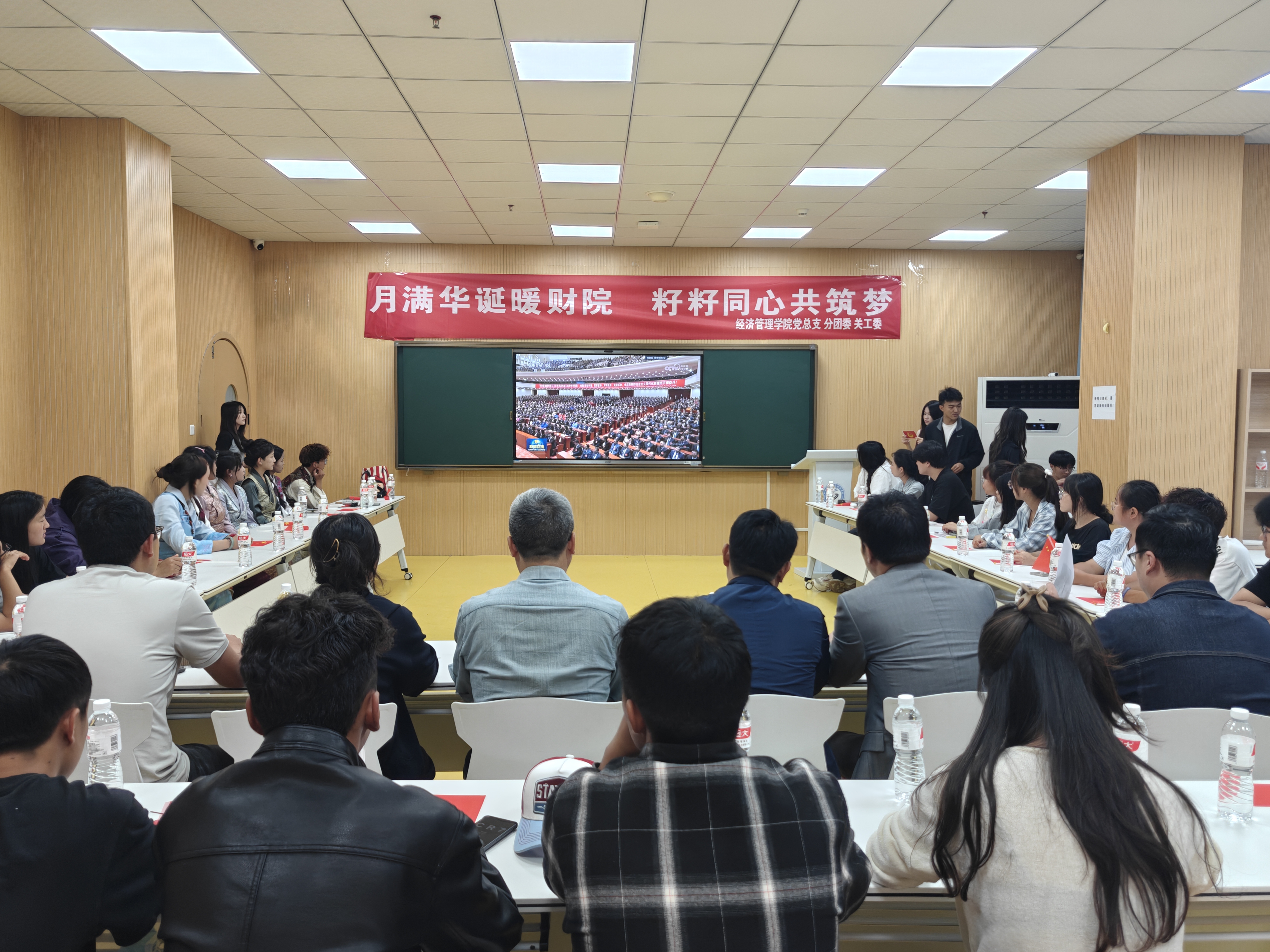 金秋送爽,丹桂飘香,在中秋佳节与国庆华诞美好相遇之际,为弘扬中华优秀传统文化,铸牢中华民族共同体意识,凝聚团结奋进的青春力量,9月30日,经济管理学院在五育中心一楼思政教育教室举办了“月满华诞暖财院 籽籽同心共筑梦”少数民族学生交流会。学院2024级、2025级来自藏族、瑶族、苗族、土家族、布依族等12个民族的38名同学参加了活动,学院党总支副书记章尧东、民建会员陈通老师、民进会员叶强老师和全体专职辅导员全程参与。