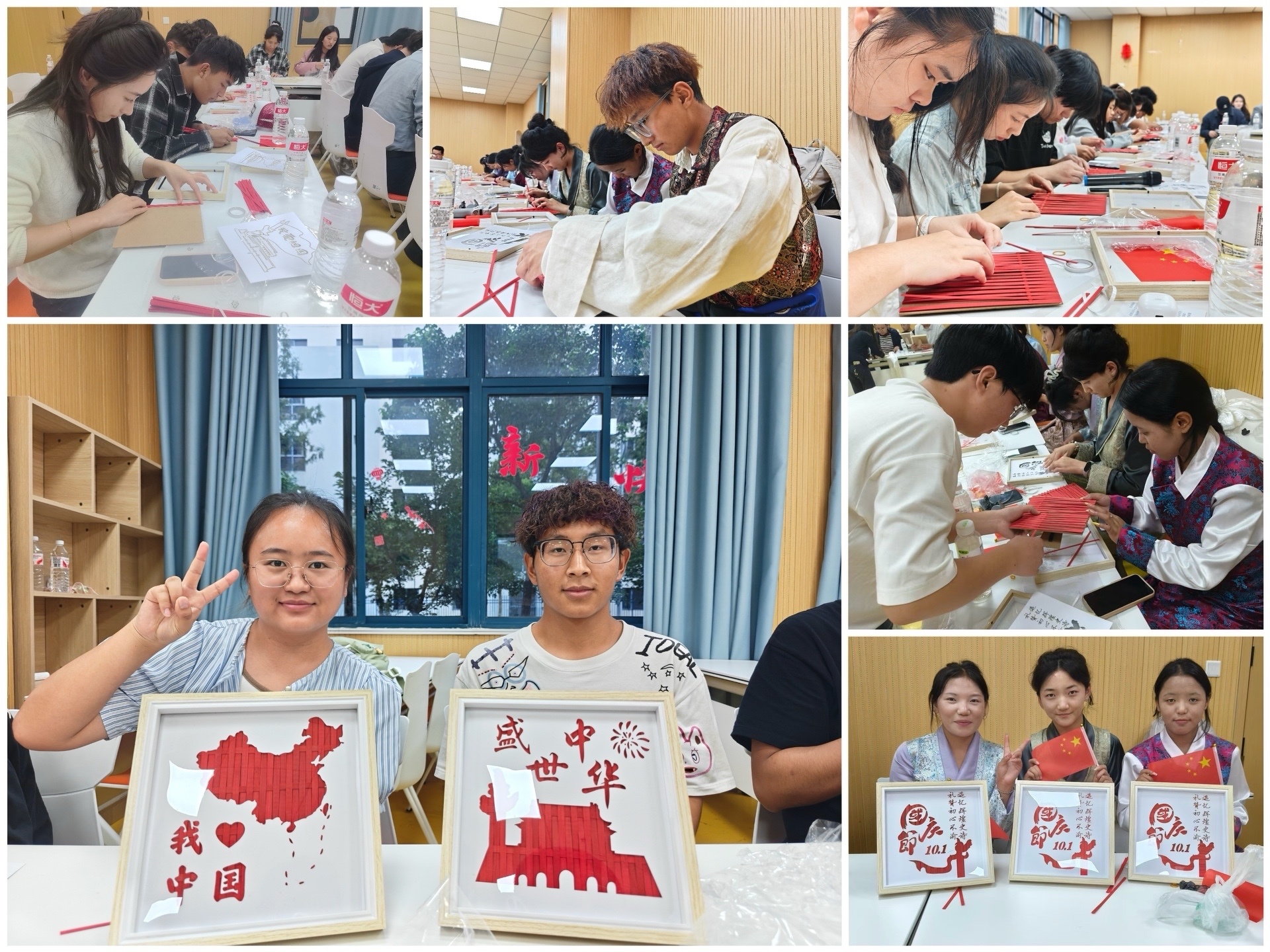 现场,师生一起通过非遗竹编画和歌曲合唱《我和我的祖国》,共同表达对祖国繁荣昌盛、民族团结进步的美好祝福,共绘爱党爱国同心圆。