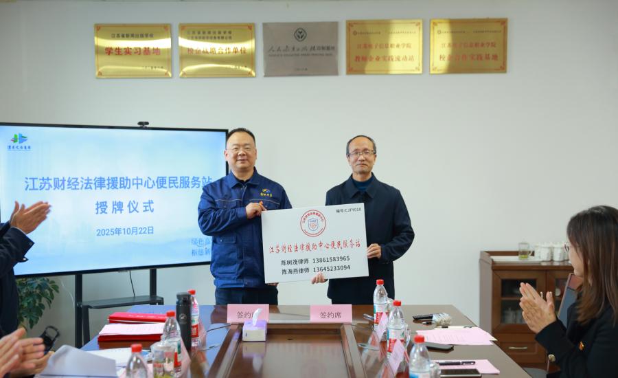 四是由法律援助中心主任陈树茂与江苏新华印务有限公司总经理赵耀共同为“江苏财经法律援助中心便民服务站”揭牌。服务站的设立将为学生提供实践平台,同时为协会企业及职工提供便捷的法律援助,实现法律服务下沉、资源互通共享。