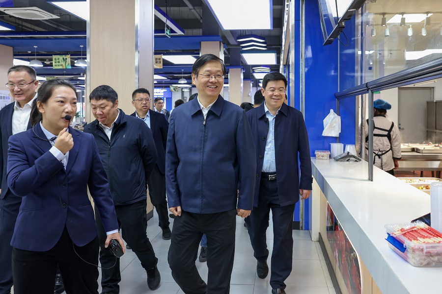 为切实加强校园食品安全监管,保障师生身体健康和生命安全。10月23日上午,江苏省市场监管局局长、党组书记沈海斌一行来校调研,省市场监管局食品经营安全监管处处长薛维宇,人事教育处处长陈幸忠,淮安市市场监管局党委书记、局长、市知识产权局局长王锐,淮安经济技术开发区党工委委员、管委会副主任孟东波等参加调研,校党委书记闫超栋,副校长王丹陪同调研。