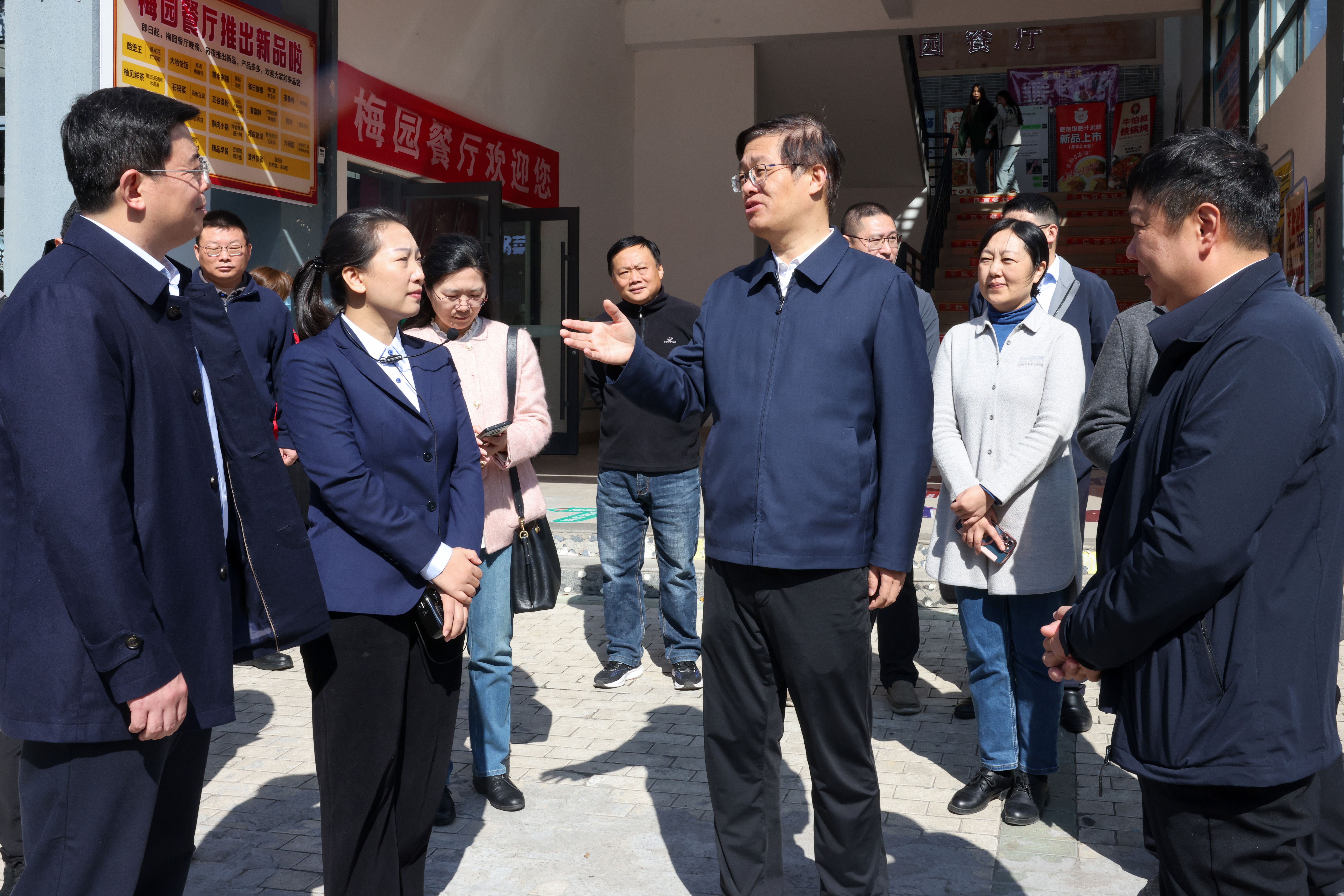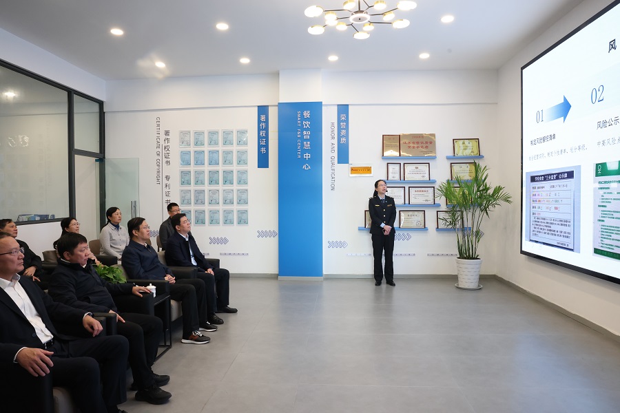 随后,各位领导深入餐厅现场,实地察看运营管理及食品安全措施落实情况,并就风味窗口人员配置、餐具回收清洗流程、防鼠措施落实、食品留样管理、索证索票执行以及厨余垃圾处理等关键环节,与相关人员进行了细致交流。
