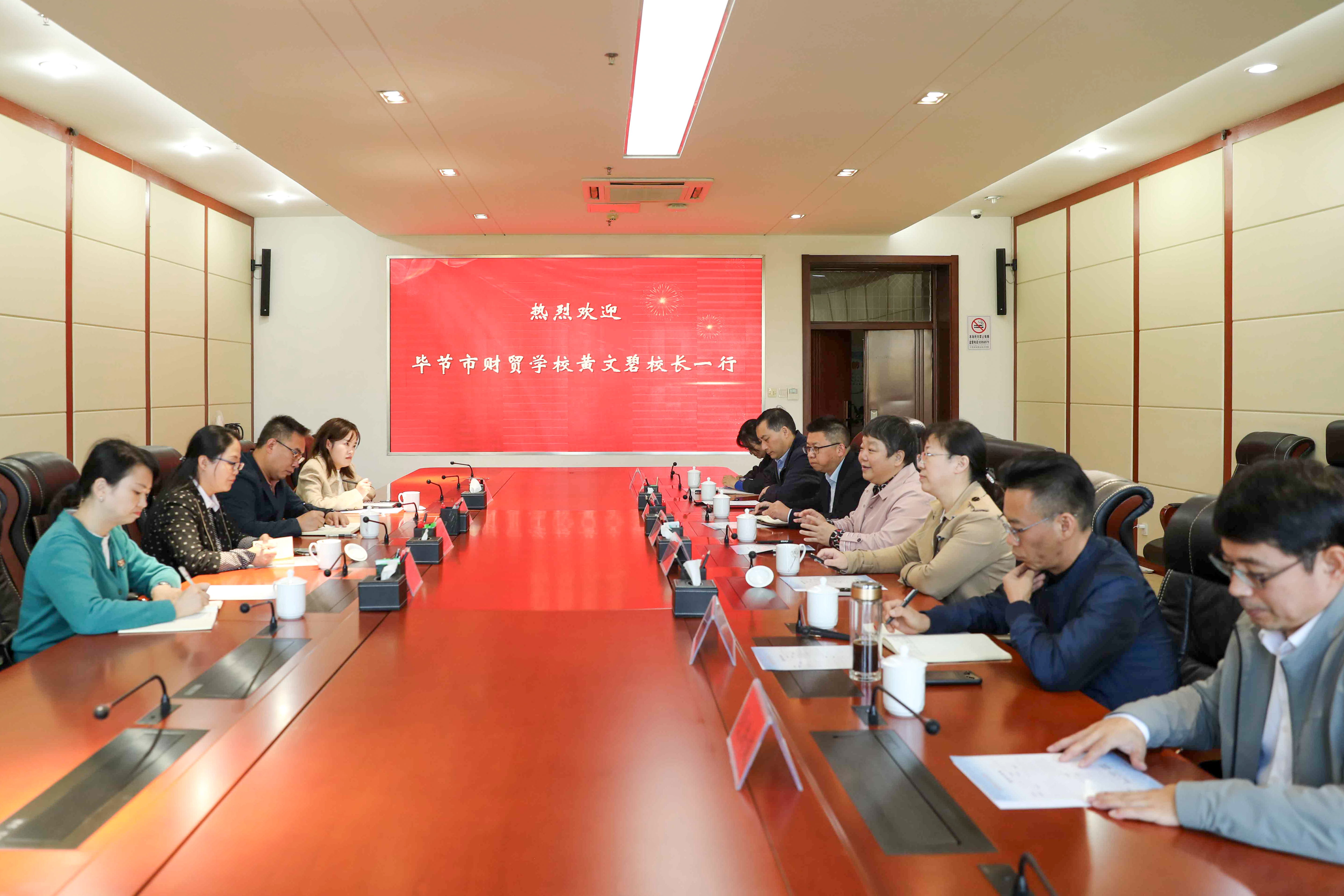 会上,杜萍对毕节市财贸学校黄文碧校长一行到访表示热烈欢迎,并向来宾介绍了我校的基本情况、办学成绩、办学特色等,并就进一步落实中央统战部等部门关于推动统一战线“地域+领域”组团式帮扶毕节相关工作交换意见。黄文碧对我校给予帮扶支持和热情接待表示感谢,对毕节市财贸学校的基本情况和办学历程做了简要介绍,在财经类专业的帮扶共建工作上提出期待。与会人员围绕加强深层次、内涵式合作,不断推动共建工作可持续高质量发展进行了热烈的研讨。