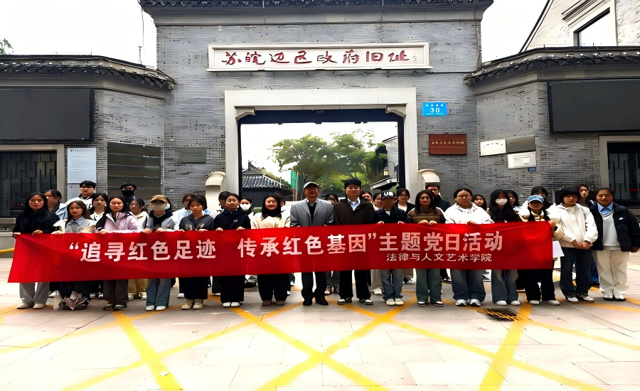 今年是中国人民抗日战争暨世界反法西斯战争胜利80周年。为弘扬爱国主义精神,传承红色基因,厚植家国情怀,10月25日上午,法文学院学生党支部赴江苏省爱国主义教育基地——苏皖边区政府旧址纪念馆开展“追寻红色足迹,传承红色基因”主题党日活动。学校关工委副秘书长蔡振华、学院学生党支部全体师生党员、入党积极分子参加此次活动。