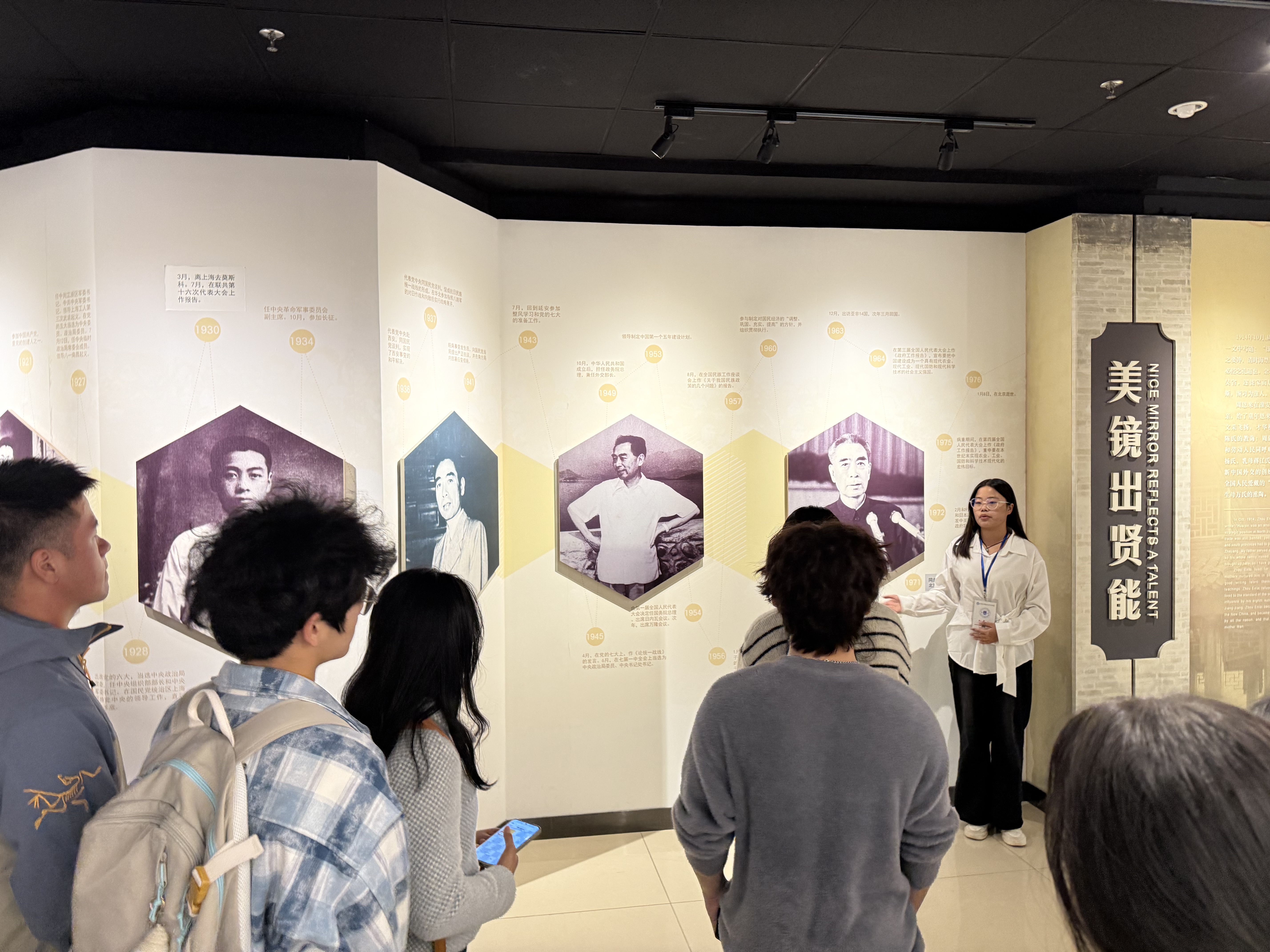 在图书馆资源探索之后,同学们先后走进周恩来文化馆与淮商文化馆,开启文化浸润之旅。在周恩来文化馆内,讲解员以珍贵史料与实物展品为依托,生动再现了周恩来同志在不同历史时期的革命实践与精神风范,重点解读了其“坚守信仰、服务人民”的高尚品格,让同学们在红色文化熏陶中厚植家国情怀。随后的淮商文化馆参观中,同学们深刻体会到地方商业文化与专业领域的内在关联。
